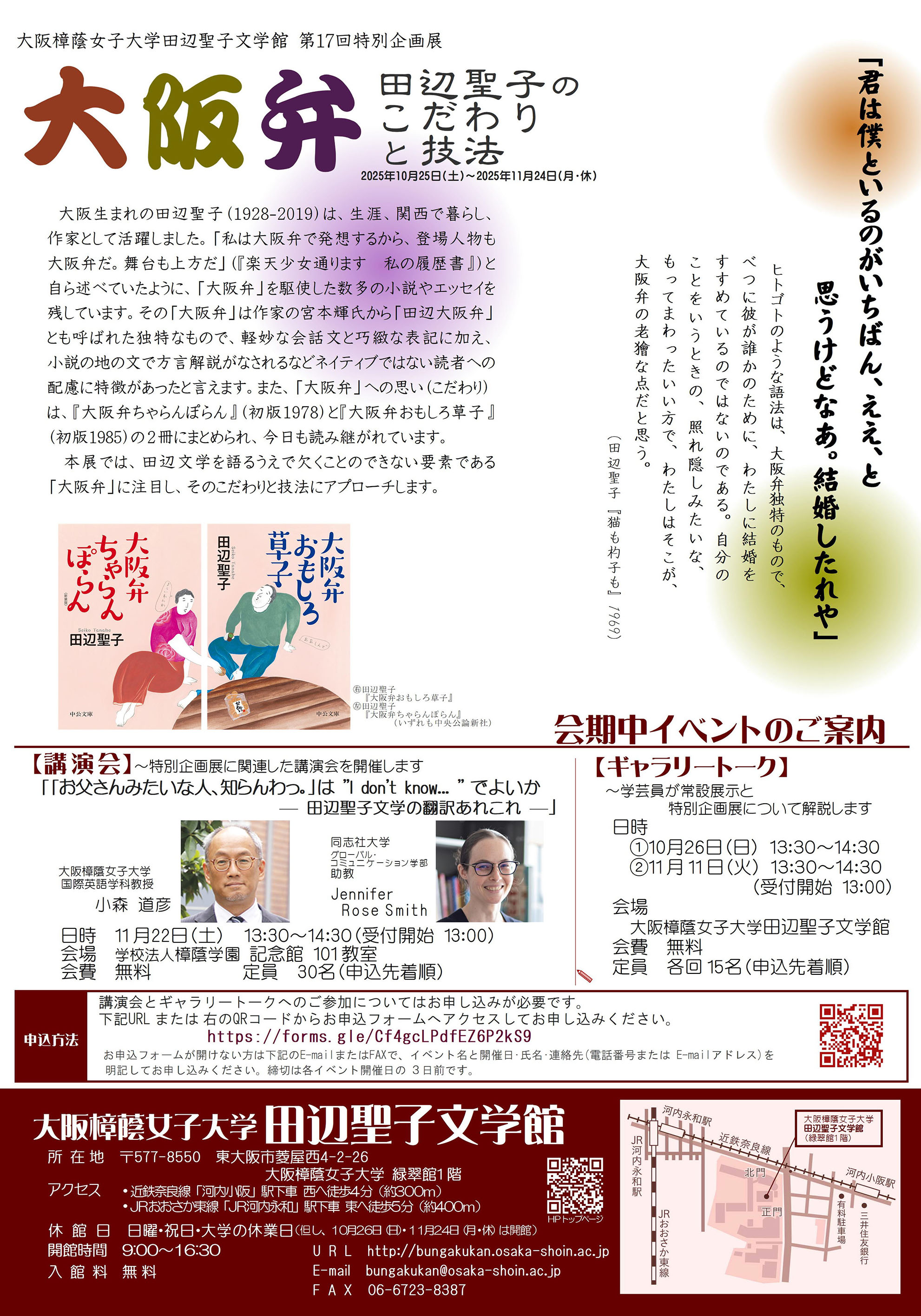 「第17回特別企画展 大阪弁 ―田辺聖子のこだわりと技法―」開催のお知らせ(2025/10/25~11/24)