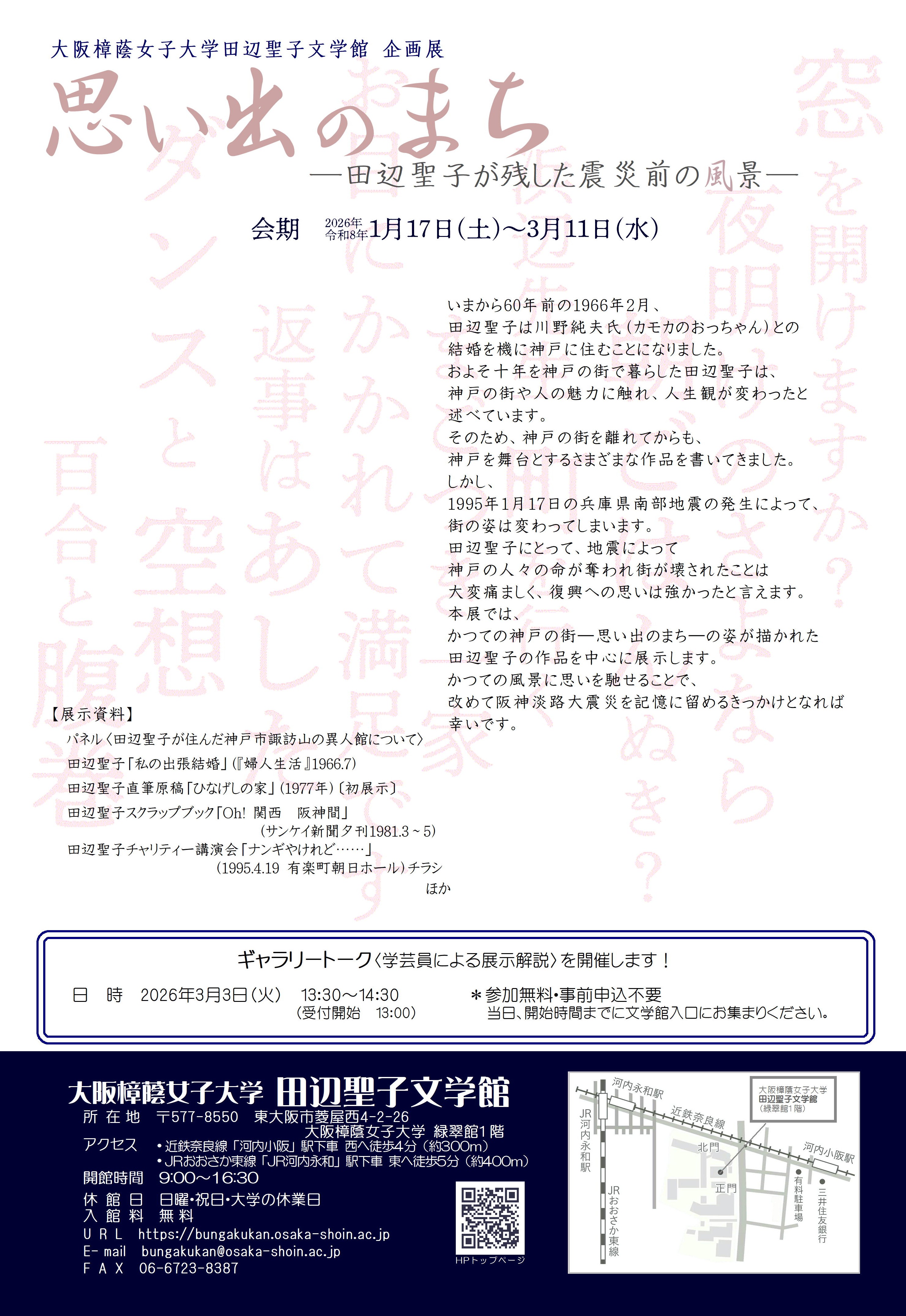 企画展「思い出のまち―田辺聖子が残した震災前の風景―」開催のお知らせ(2026/1/17~3/11)
